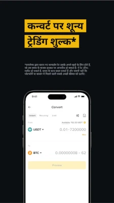 अपनी डिजिटल संपत्तियों को निष्क्रिय न रहने दें; बायनेन्स पर दैनिक रिवॉर्ड अर्जित करने के अनेक अवसर खोजें। अनुभवी ट्रेडर्स की सफल रणनीतियों को केवल एक क्लिक में अपनाएं या फ्लेक्सिबल और लॉक्ड स्टेकिंग, डुअल इन्वेस्टमेंट और यील्ड फार्मिंग जैसे विकल्पों के साथ अपनी कमाई को अधिकतम करें। USDT, USDC, बिटकॉइन या इथेरियम जैसे प्रमुख एसेट्स को स्टेक करके अतिरिक्त लाभ पाएं। बायनेन्स मेगाड्रॉप पर विशेष एयरड्रॉप्स के साथ ब्लॉकचेन की नई लहर को समझें, और बायनेन्सअल्फा के साथ ऑन-चेन वेब3 टोकन में ट्रेड करें। आपकी सुरक्षा हमारी सर्वोच्च प्राथमिकता है। बायनेन्स दुनिया के सबसे अधिक रेगुलेटेड क्रिप्टो एक्सचेंजों में से एक है, जिसे अनेक देशों में लाइसेंस और नियामक मंजूरी प्राप्त है। आपके सभी फंड $1 बिलियन के सुरक्षित 'यूज़र एसेट फंड' (SAFU) में 1:1 के अनुपात में संरक्षित हैं। हमारा प्लेटफॉर्म रियल-टाइम रिस्क मॉनिटरिंग, सख्त KYC प्रोटोकॉल और एंड-टू-एंड डेटा एन्क्रिप्शन से लैस है, जो एक सुरक्षित ट्रेडिंग अनुभव सुनिश्चित करता है। हमारी तेज़ और सरल KYC प्रक्रिया के माध्यम से मिनटों में अपना खाता वेरिफाई करें और तुरंत बिटकॉइन खरीदना शुरू करें।