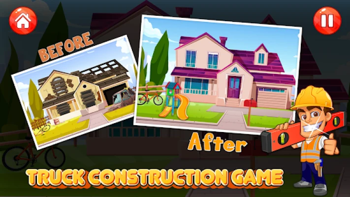 बच्चों के लिए ट्रक गेम बिल्डर के साथ रचनात्मक बनें! यह निर्माण सिम्युलेटर बच्चों को बुलडोजर, एक्सकेवेटर और ट्रकों का उपयोग करके घर व अन्य संरचनाएं बनाने देता है। कल्पना और रचनात्मकता से मज़ेदार निर्माण खेल का आनंद लें।