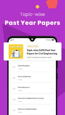 यह ऐप विशेष रूप से विभिन्न इंजीनियरिंग और विज्ञान धाराओं के लिए डिज़ाइन किया गया है, जिसमें मैकेनिकल (ME), कंप्यूटर साइंस (CSE), इलेक्ट्रिकल (EE), सिविल (CE), इलेक्ट्रॉनिक्स और कम्युनिकेशन (ECE), केमिकल (CH), इंस्ट्रुमेंटेशन (IN), फिजिक्स (PH), केमिस्ट्री (CY), मैथमेटिक्स (MA), लाइफ साइंसेज (XL), इंजीनियरिंग साइंसेज (ES), बायोटेक्नोलॉजी (BT), आर्किटेक्चर (AR), एनवायरनमेंटल साइंस & इंजीनियरिंग (ES) और डेटा साइंस & आर्टिफिशियल इंटेलिजेंस (DS & AI) शामिल हैं। प्रत्येक स्ट्रीम के लिए गहन संशोधन नोट्स और 30 वर्षों के पिछले प्रश्न पत्रों से संकलित MCQs बैंक आपकी समझ को गहरा करने में मदद करता है। ऑनलाइन टेस्ट सीरीज़ में अपनी अखिल भारतीय रैंकिंग जांचें और वास्तविक परीक्षा पैटर्न के साथ खुद को परिचित करें, जिसमें वर्चुअल कैलकुलेटर का उपयोग भी शामिल है, जो आपकी दक्षता को बढ़ावा देगा।