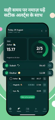 यह ऐप आपको सत्यापित नमाज़ के समय की जानकारी प्रदान करता है, साथ ही अनुकूलित अज़ान अलर्ट भी देता है ताकि आपकी कोई भी नमाज़ न छूटे। आप पूर्ण पवित्र क़ुरआन को विभिन्न अनुवादों और सुंदर तिलावत के साथ पढ़ व सुन सकते हैं, जो आपकी कुरान सीखने की यात्रा को आसान बनाता है। दुनिया के किसी भी कोने में हों, क़िबला फ़ाइंडर मक्का की दिशा तुरंत दिखाता है। इसके अतिरिक्त, दैनिक दुआओं, ज़िक्र और एक डिजिटल तस्बीह के साथ अपनी इबादत को गहरा करें।